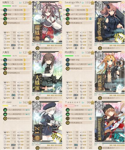 艦隊の速力を高速+以上で統一し、3-4を周回します。海域上回りで渦潮を経由し、道中2戦でボスへ向かいます(ACFJP)。渦潮マスからJマスへ遷移するためには、高速+以上、軽巡1、駆逐2が必要そうです。道中2戦で済むこと、ボスマスで得られる提督経験値が高い…