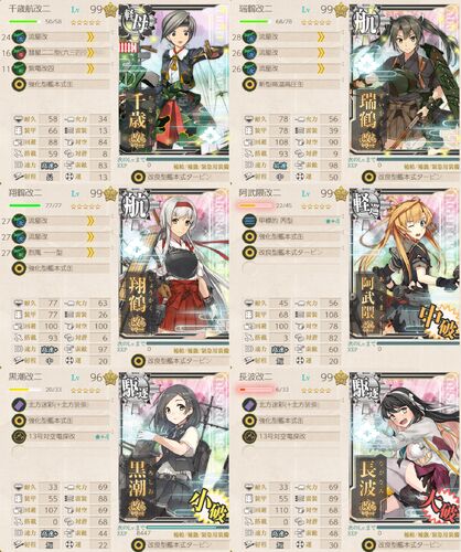 3-4です。相変わらず追い込みでは最強の海域と思います。高速+編成でドロップカットした場合、経験値カットした場合、併用した場合で獲得できる戦果を比較します。