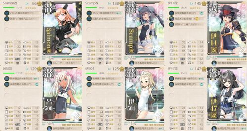 5-4です。South Dakotaが期間限定でドロップするようなので周回します。5-4も撤退を完全には防げない海域です。撤退のストレスを減らすために潜水艦を使います。