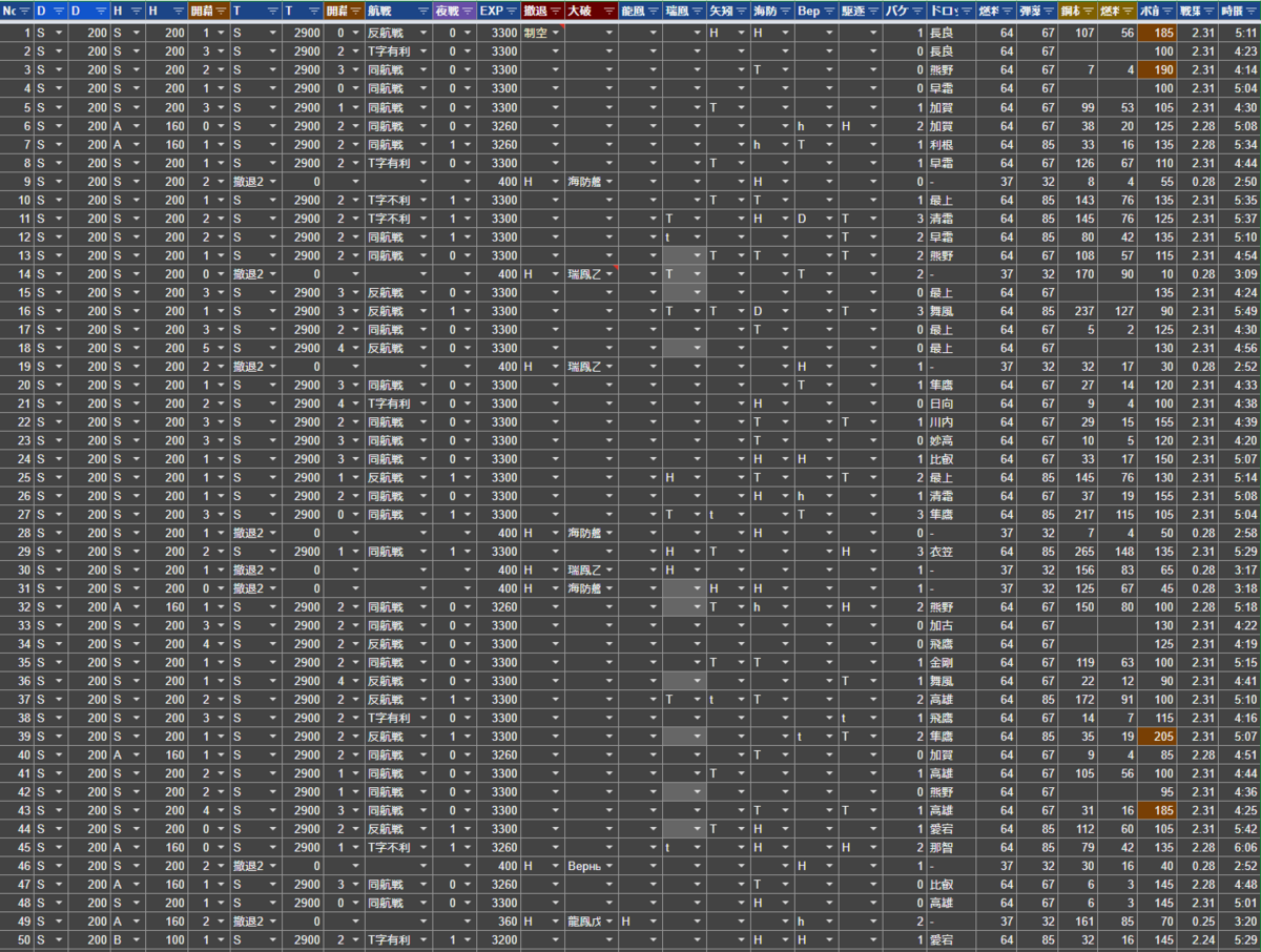 | 出撃時間 | 3:52:41 | 4:39 | 5:32 | - | |