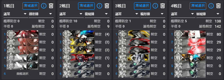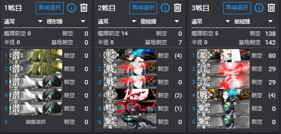 - 航戦形態と夜戦の有無