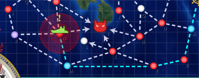 4-5で補給艦も狩っていこうという編成です。駆逐艦が2隻いれば高速+でもNマスに進むルートを取ります。