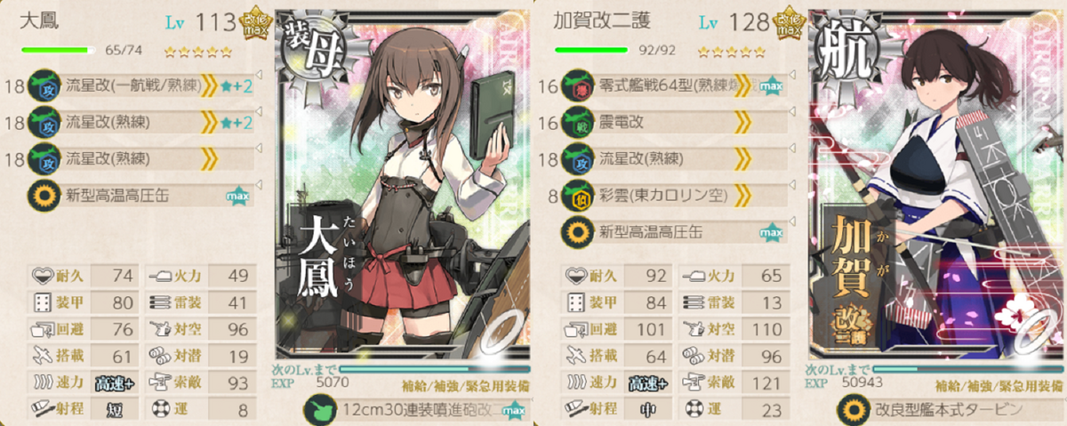 対潜攻撃ができる加賀改二護と、未改造大鳳を入れてみました。