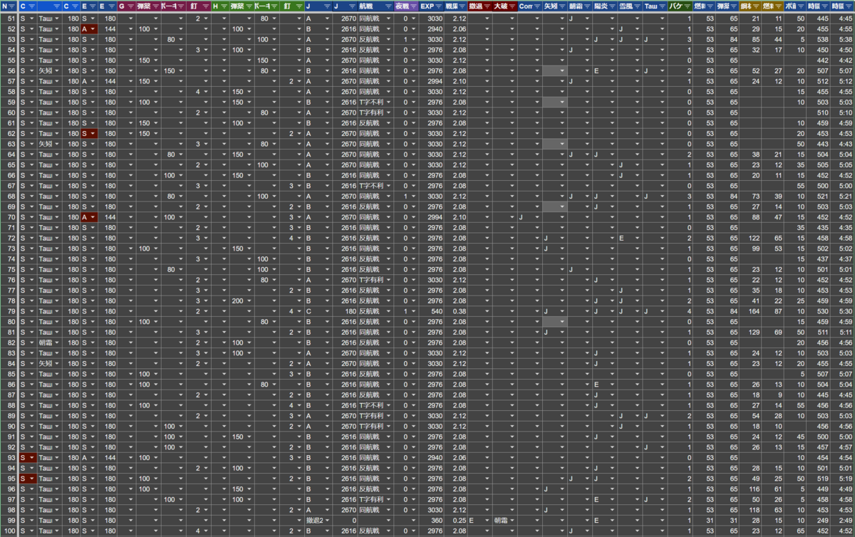 100回出撃して96回ボス到達しました。