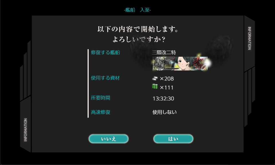 三隈特、矢矧乙は6-3で編成する艦娘の中で特に修理費の大きい艦娘です。三隈特は矢矧乙よりもさらに一回り修理費が大きくなります。