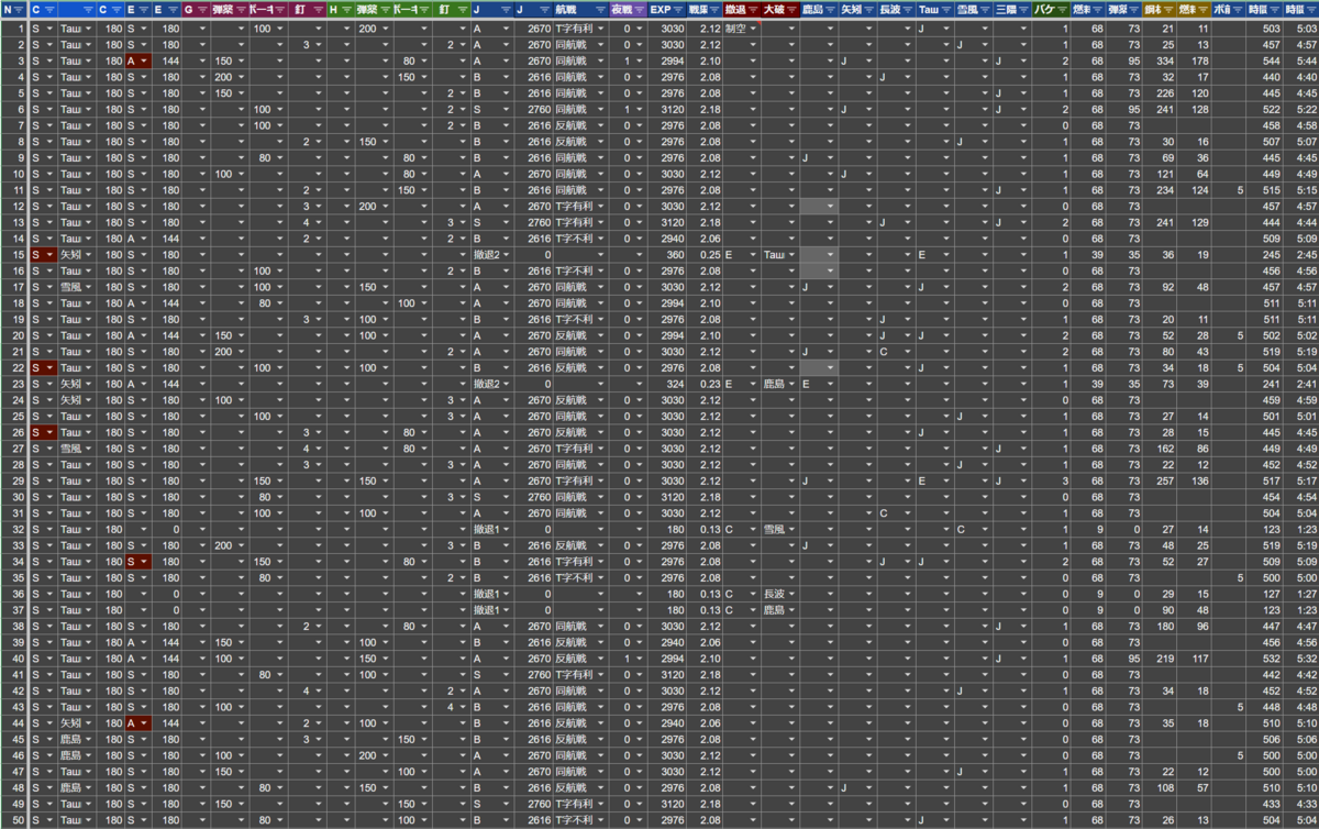 となり、ほぼすべての面で結果が改善されたと思っています。(出撃あたりの勝利率とボスマス昼戦勝利率が若干下がっていますが、周回速度を改善しているため、同じ時間出撃し続けたときの勝利回数で上回ります)