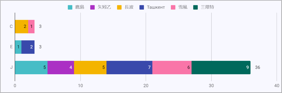| 出撃・内訳 | 回数 | 割合 | 大破箇所 |