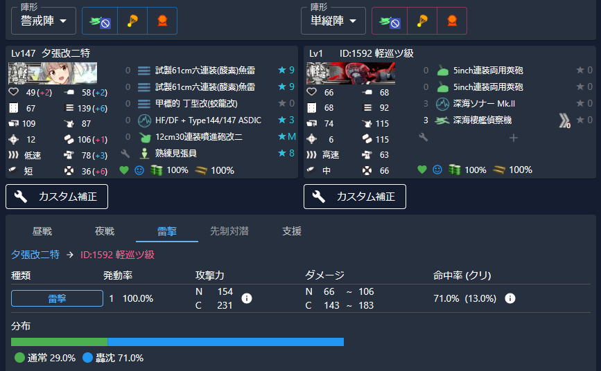 ・夕張特の方が雷撃命中率が高い